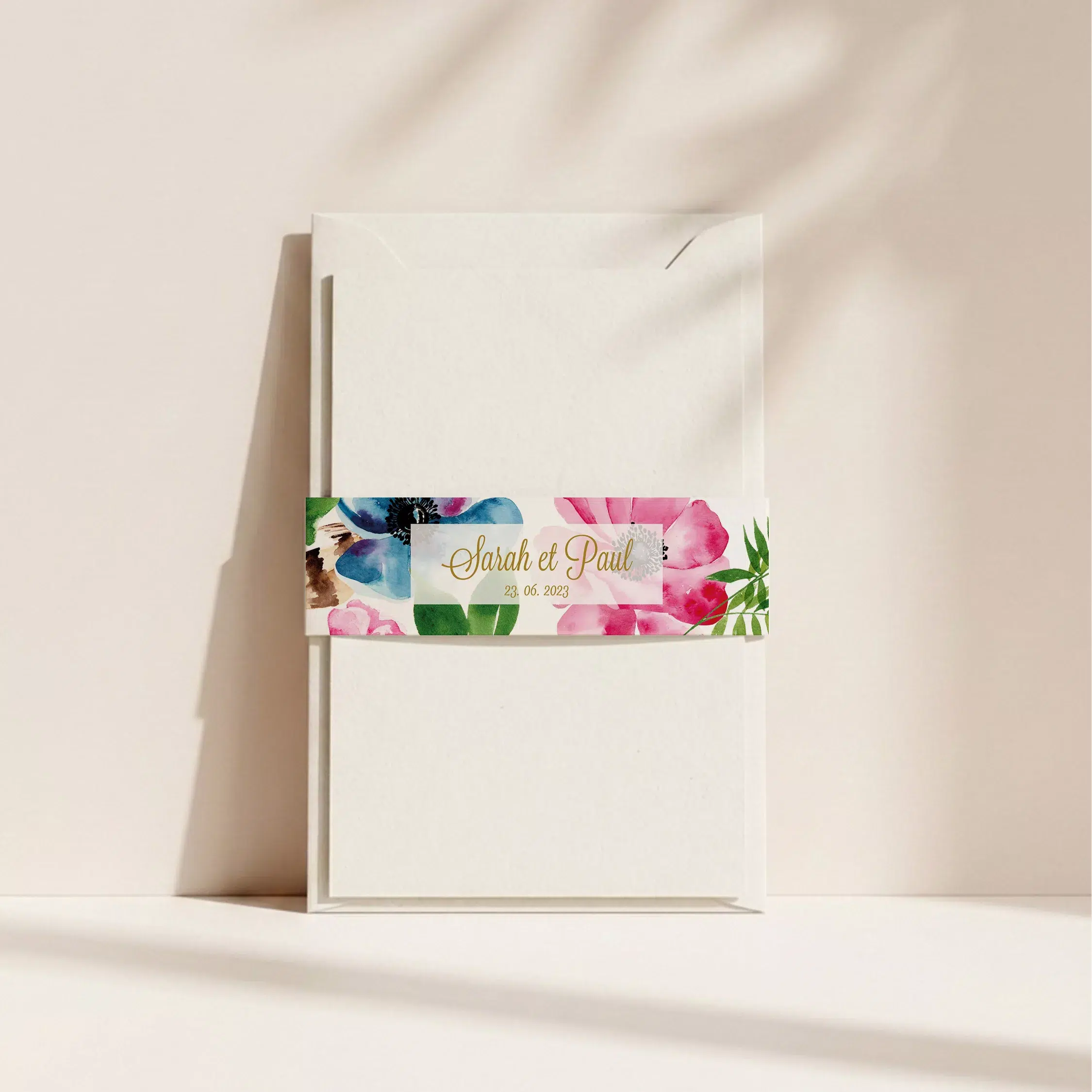 Le belly band permet d’assembler vos différents cartons avec élégance. En effet, cet accessoire maintient votre faire-part et vos invitations dans un ensemble soigné. Le studio se charge de la personnalisation pour qu’il s’accorde parfaitement au design et à l’esprit de votre collection. Ainsi, vos invités profitent d’une présentation raffinée dès l’ouverture de l’enveloppe. La collection Bohowild de Maison Célestine célèbre l’esprit libre et naturel des mariages bohèmes. Entièrement peinte à la main à l’aquarelle dans notre studio, elle mêle avec finesse fleurs sauvages, feuillages délicats, plumes et bois de cerf. Chaque élément a été pensé pour créer une ambiance douce, poétique et un brin sauvage, fidèle à l’esprit bohème.