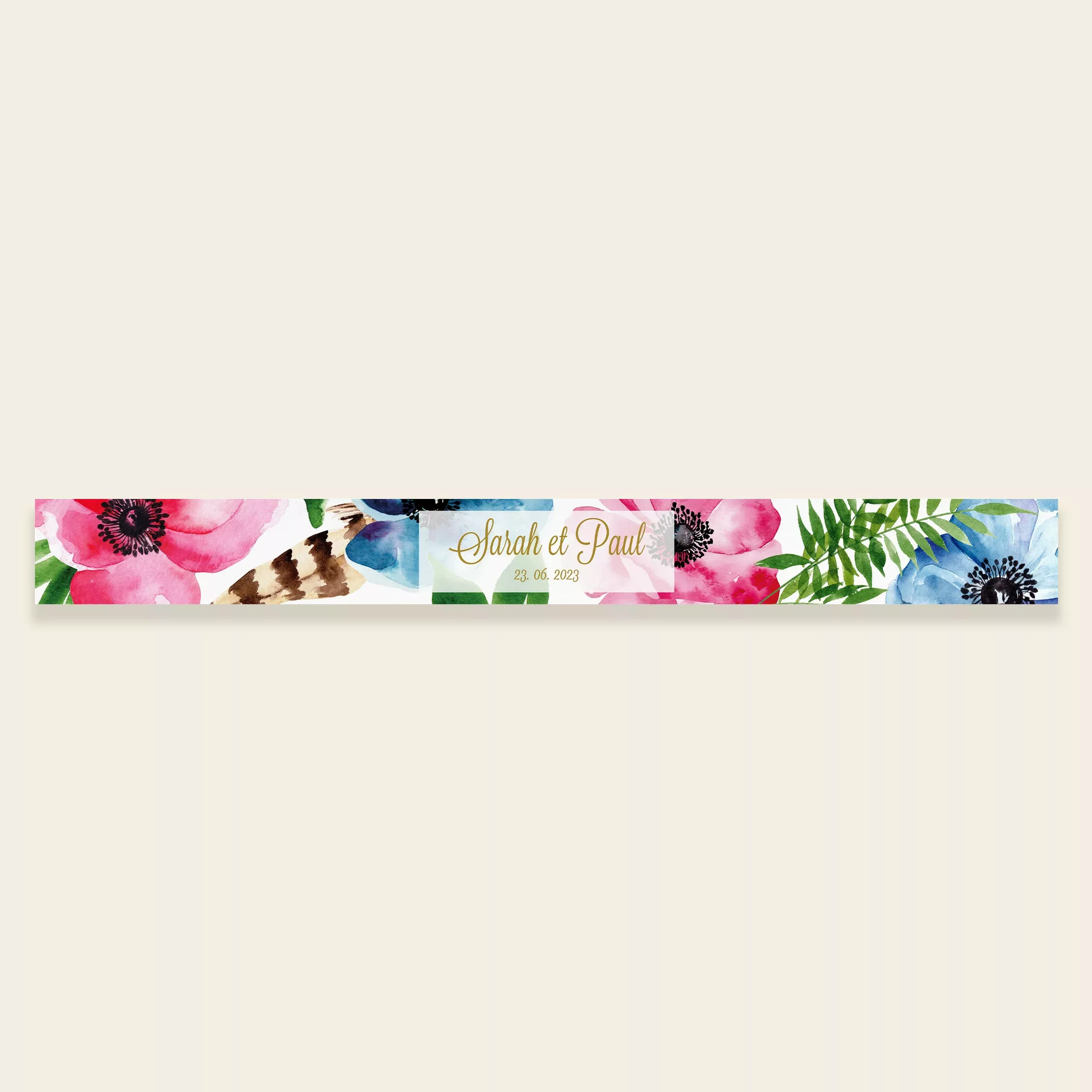 Belly-Band pour invitations de mariage de la collection BOHOWILD issue de la gamme mariage de Maison Célestine. “Bohowild” est un design à l’esprit bohème entièrement peint à la main à l’aquarelle au studio. Cette papeterie de mariage mêle fleurs, feuillage, plumes, bois de cerf et typographie chic et romantique. C’est une collection idéale pour les mariages à l’esprit bohème et rustique.