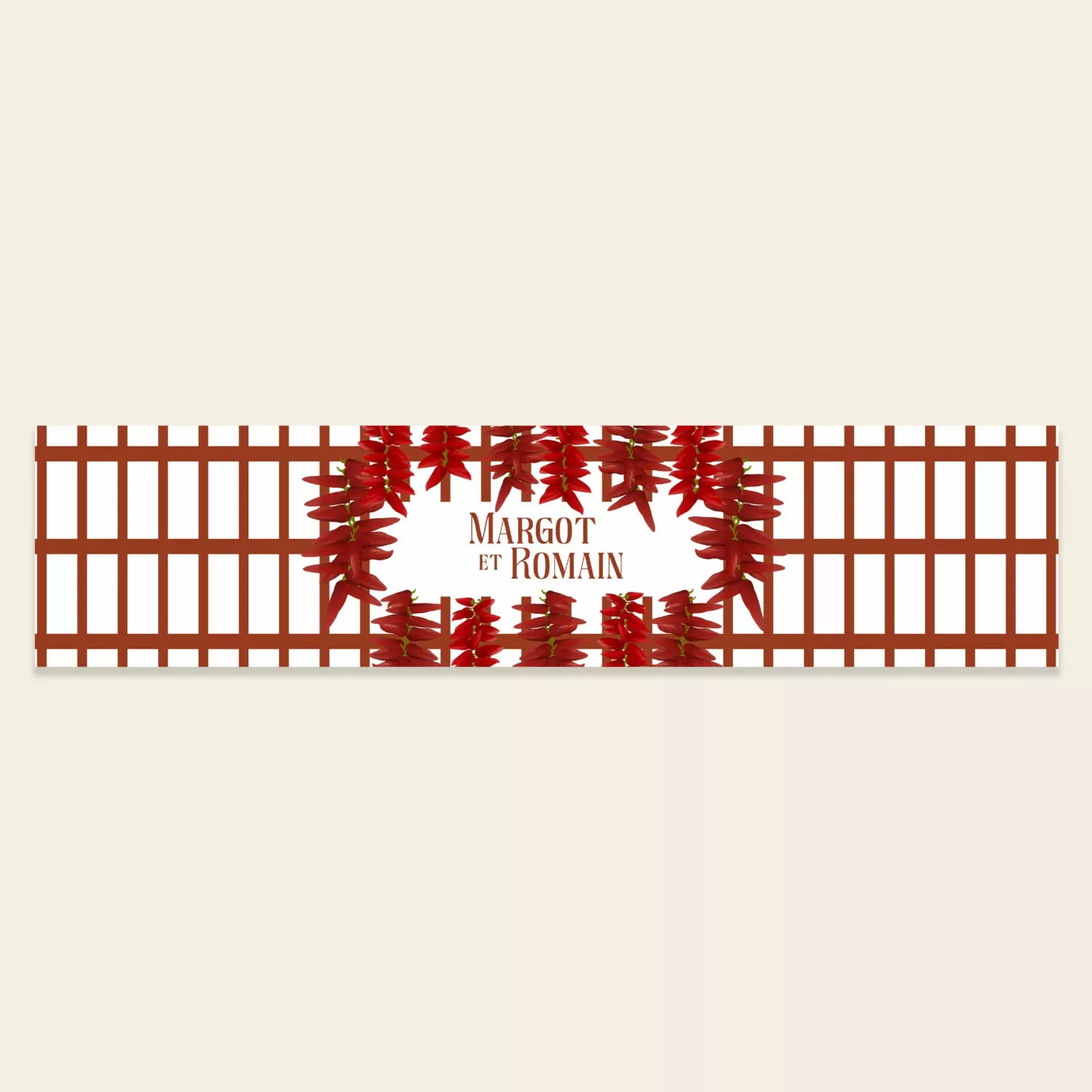 Belly-band de mariage de la collection PAYS-BASQUE issue de la gamme mariage du studio. Découvrez la collection « Pays Basque » de Maison Célestine, une gamme exclusive de papeterie de mariage inspirée par la beauté et l’authenticité de la région du Pays Basque. Parfaite pour les mariages qui célèbrent l’âme basque, cette collection allie tradition et modernité avec des designs raffinés, des motifs élégants, et une attention minutieuse aux détails.
