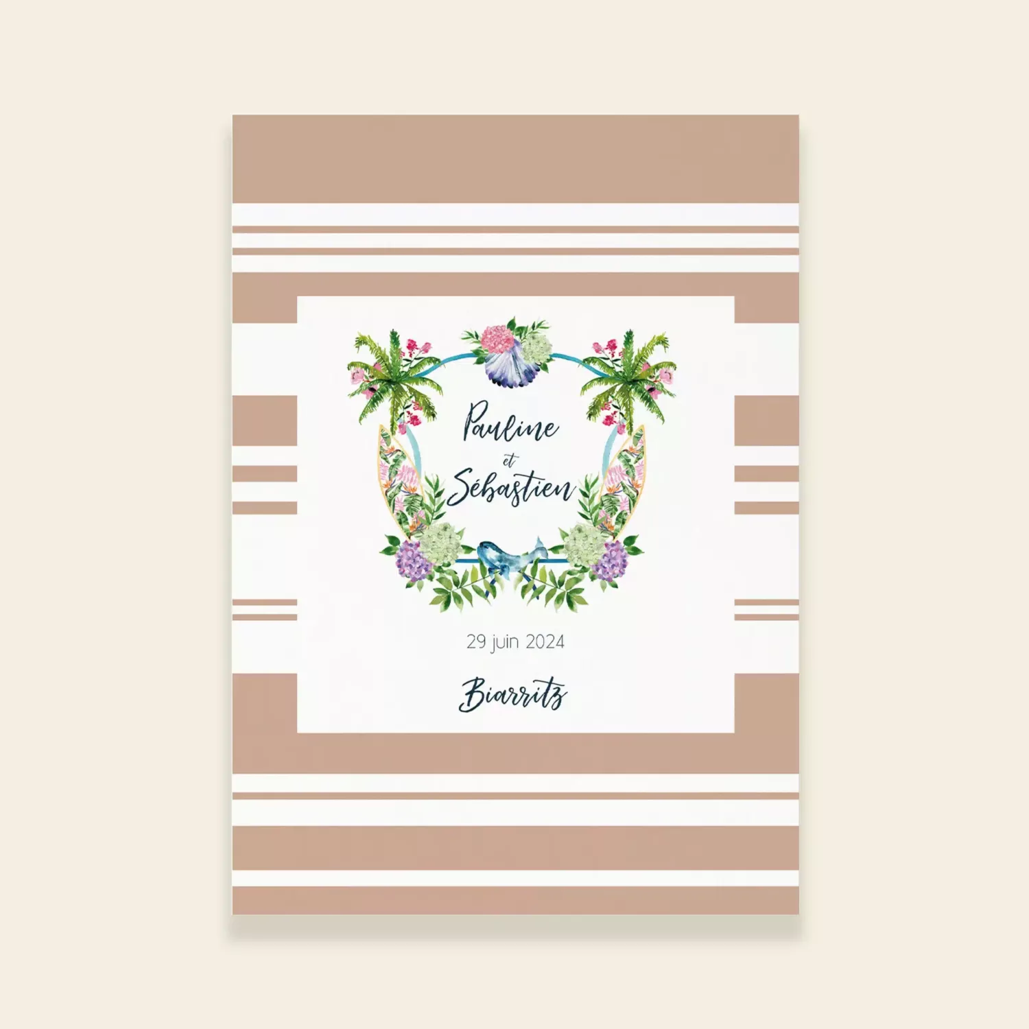 Couverture pour livret de cérémonie de mariage de la collection BIARRITZ issue de la gamme mariage du studio.