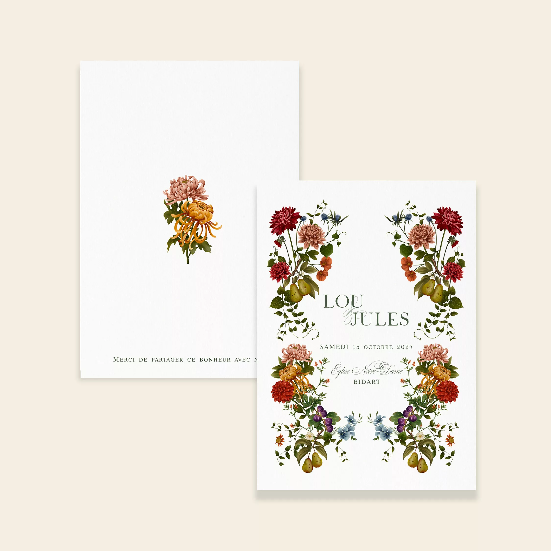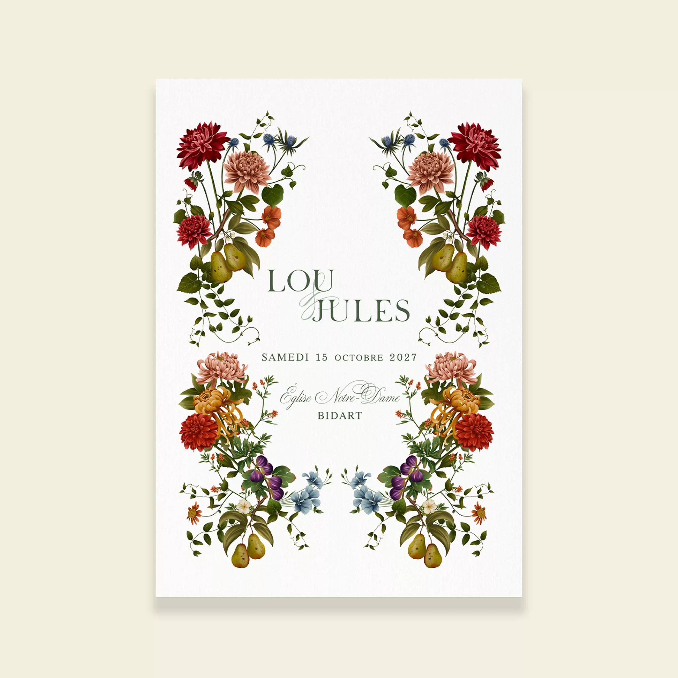 La collection « Songes d’Automne » de Maison Célestine célèbre l’élégance des mariages automnaux. Ainsi, elle s’inspire des jardins baignés de lumière dorée. De plus, elle met en valeur les fruits mûrs de saison. Poires, figues, feuillages et baies apportent chaleur et poésie. Par ailleurs, cette combinaison crée une atmosphère douce et raffinée. Chaque illustration évoque la beauté des jours qui raccourcissent. En outre, elle rappelle la tendresse des instants partagés.
