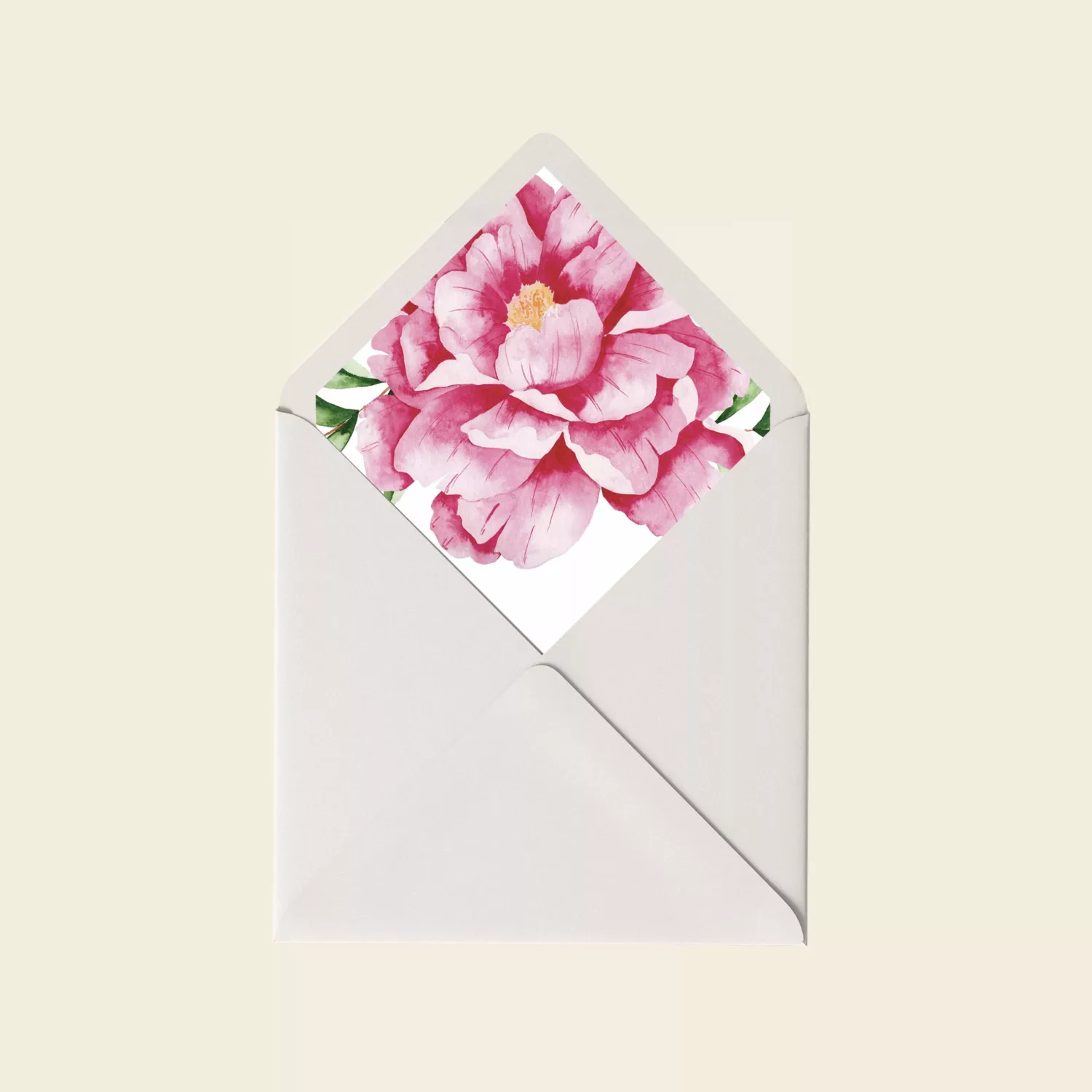 Vous pouvez retrouver le faire-part assorti à ces doublures enveloppes de la collection Jardin de Pivoines juste ici.