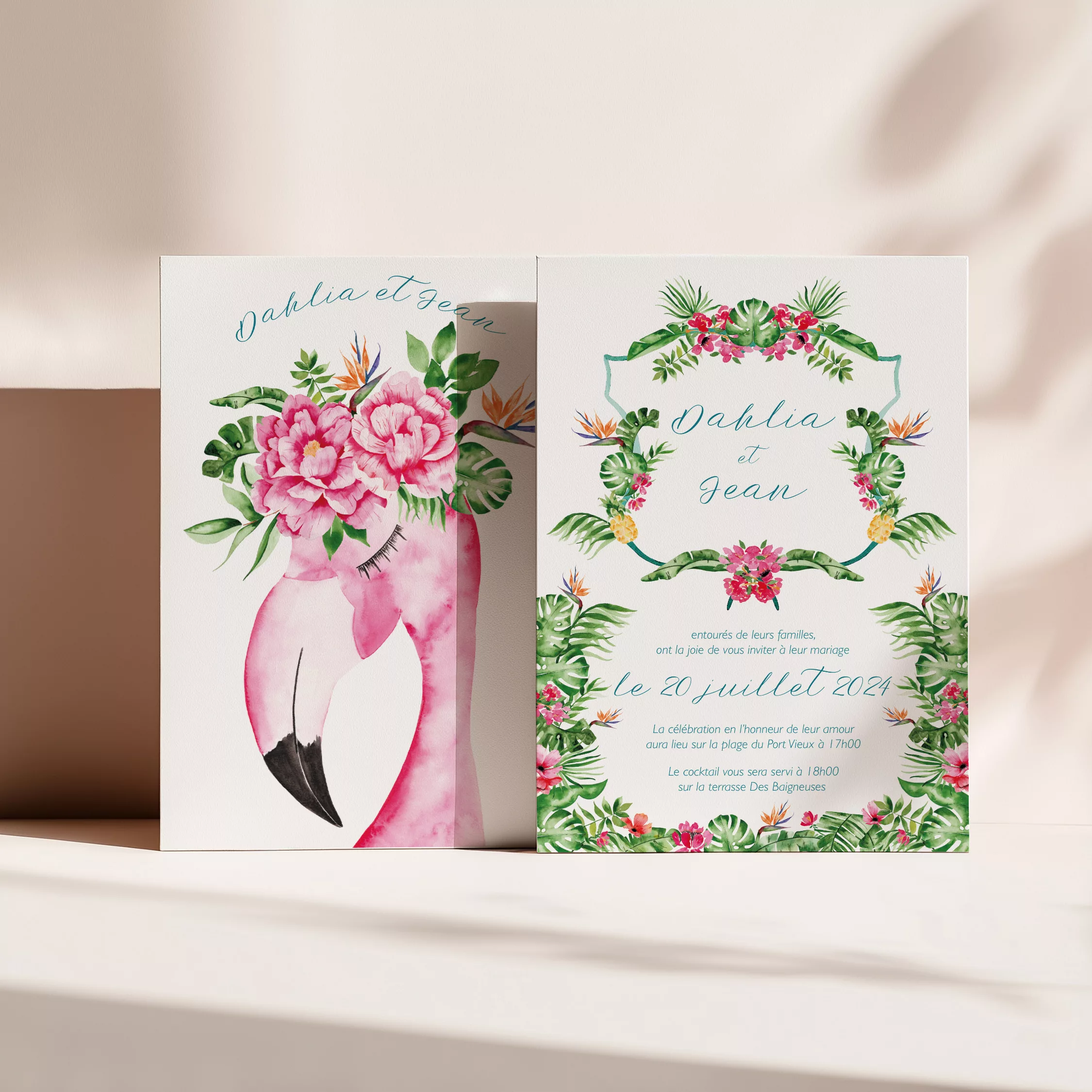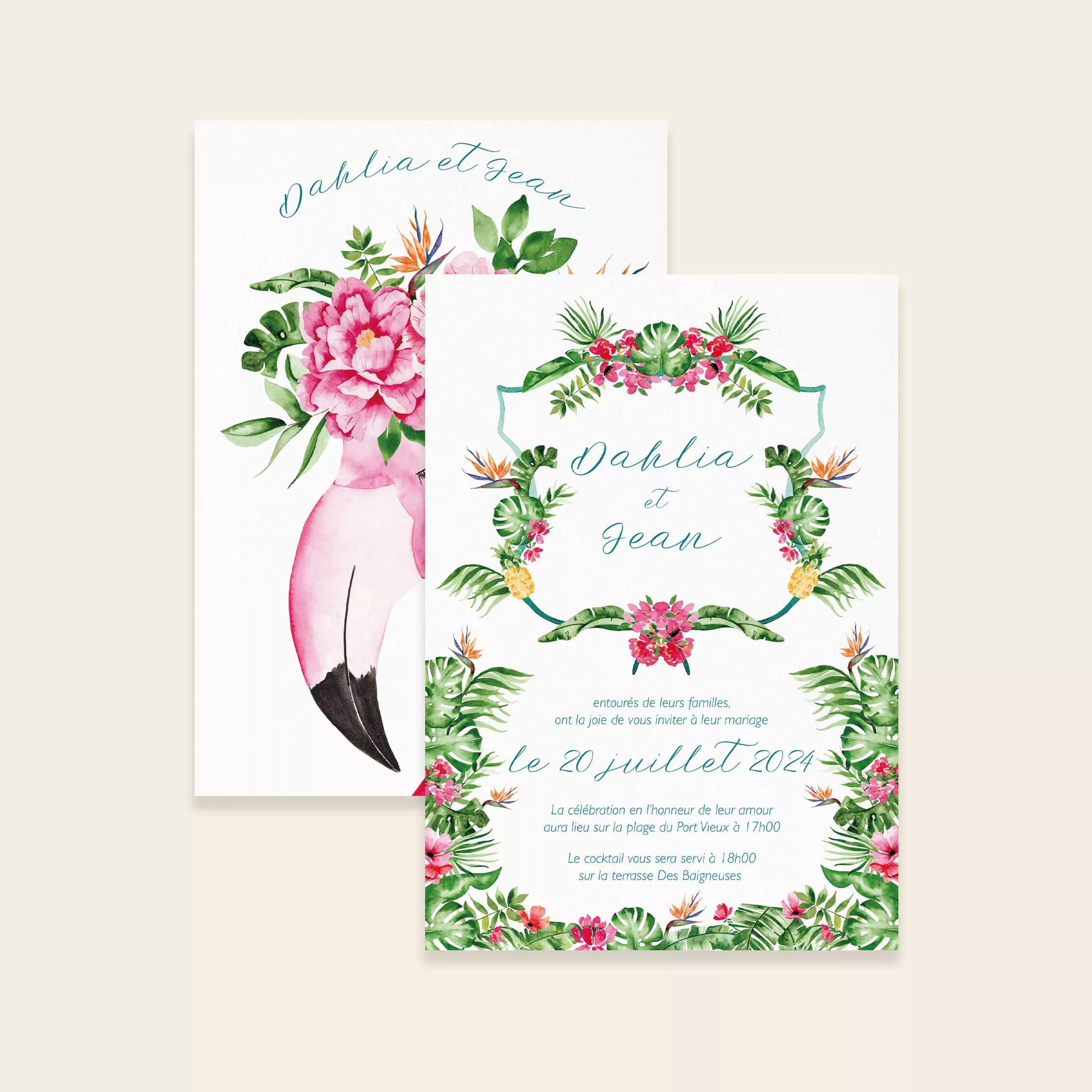 Pour plus d’inspiration, découvrez nos créations sur Pinterest. Vous y verrez comment associer fleurs, couleurs et motifs pour un mariage tropical chic et moderne. En résumé, Tropical Pop combine simplicité, couleur et exotisme. Elle transforme vos invitations en un souvenir original, facile à lire et élégant. Chaque détail est pensé pour que votre papeterie reflète votre style et l’esprit de votre journée.