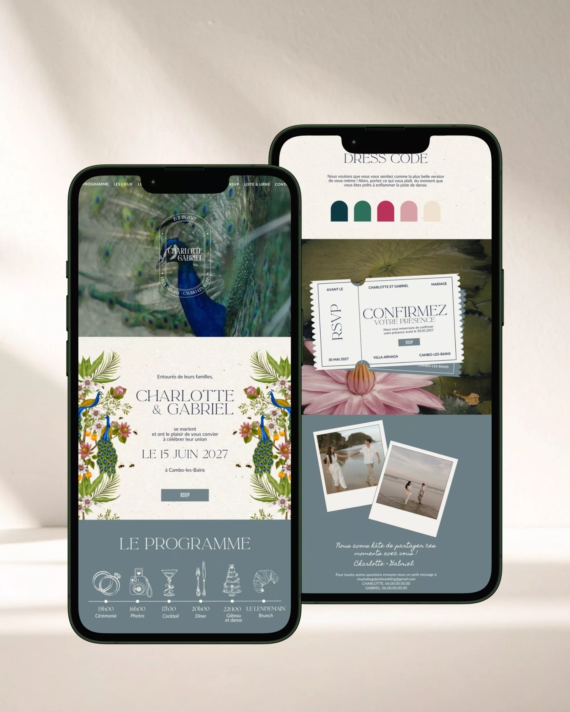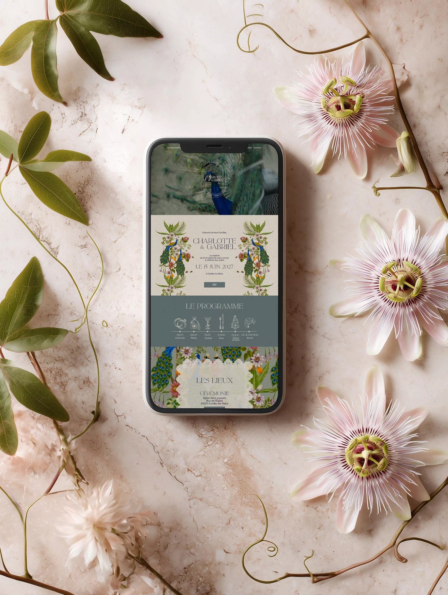 Pensé comme une expérience immersive, il permet à vos invités de découvrir votre univers, le programme et toutes les informations essentielles, en un seul lien accessible sur téléphone comme sur ordinateur.