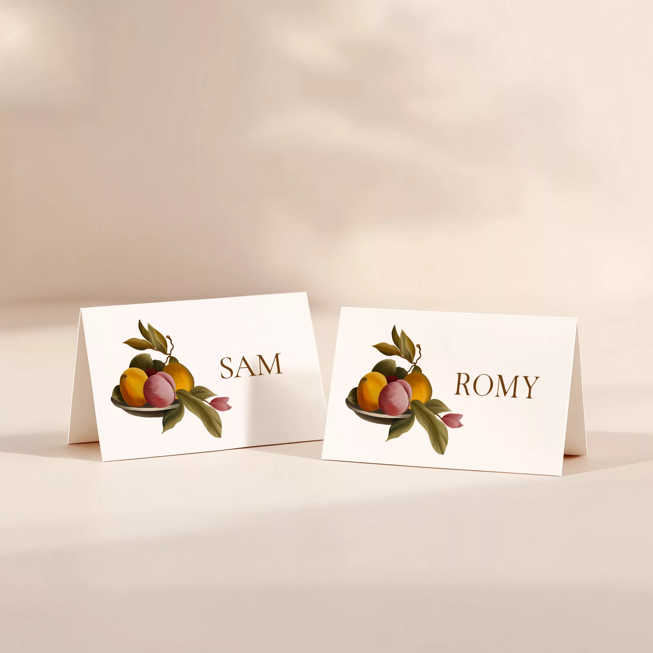 Chaque carton est personnalisé avec votre texte afin de créer un ensemble harmonieux, du faire-part aux éléments assortis : cartons d’invitationcartes RSVPmenus ou papeterie du jour J.
