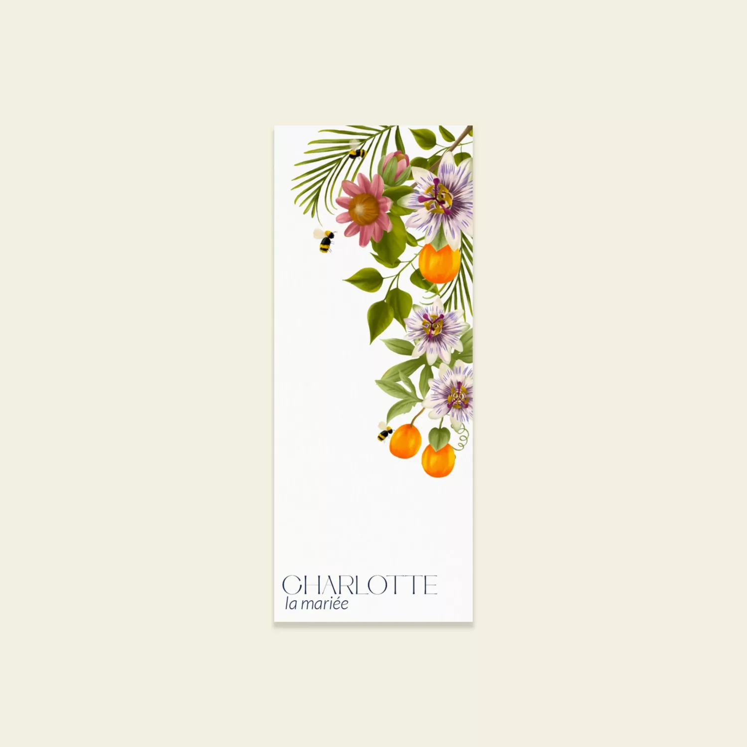 Marque-place de la collection PEACOCK GARDEN issue de la gamme mariage du studio. « Peacock Garden » est une collection inspirée de paysages anciens. Cette invitation au voyage au coeur du jardin des paons, cet animal majestueux aux plumes bleues originaire de l’Inde, est l’occasion de se plonger dans un univers exotique et élégant. Donnez le ton avec cette papeterie de mariage ou faune et flore se mélangent pour une célébration à la fois chic et intemporelle. Peacock Garden est un véritable voyage illustré qui transportera vos invités et qui restera un beau symbole de votre union. Cette collection, entièrement peinte à la main par la créatrice est idéale pour les mariages à l’esprit nature, moderne et élégant.