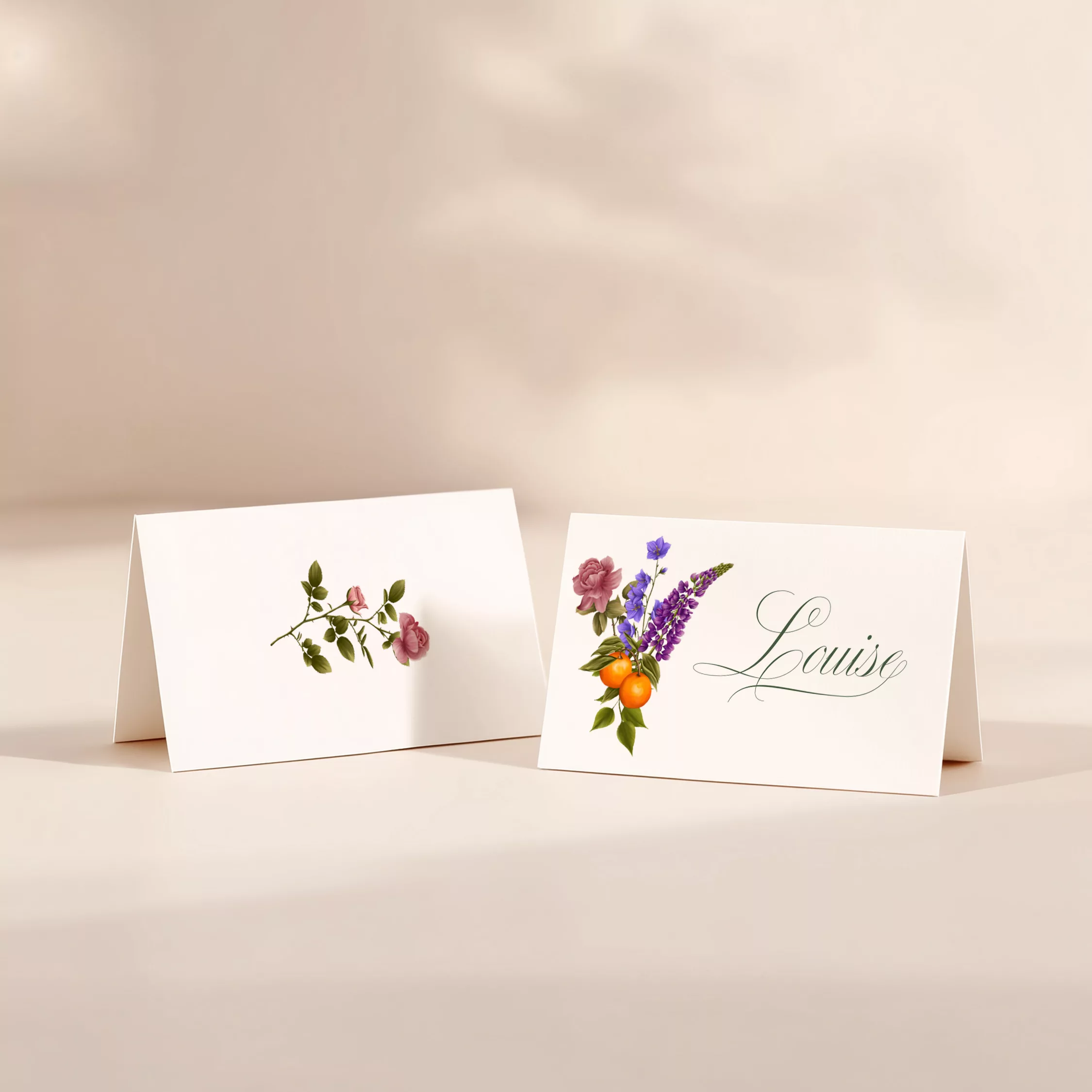 Organisez la place de chacun avec style grâce à un marque-place personnalisé. Ce petit détail pratique complète votre papeterie et facilite l’installation de vos invités. Il apporte une touche raffinée et harmonieuse à votre table. Inspiré par la beauté des jardins et le charme des treillis entrelacés, ce modèle floral apporte une touche poétique et raffinée à votre papeterie de mariage.