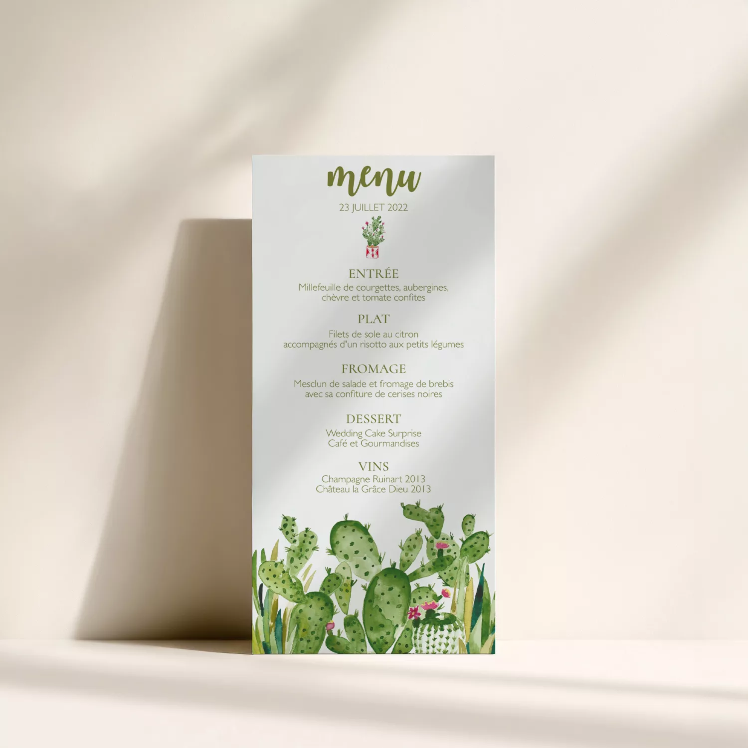 Cette papeterie se marie parfaitement avec les mariages en plein air. Elle évoque le sud, le soleil et les grands espaces. Grâce à son style naturel et bohème, elle s’accorde facilement avec une décoration en bois, en lin ou ornée de fleurs séchées. Si vous rêvez d’un mariage à l’esprit libre, Cactus Garden est faite pour vous. Ses tons lumineux et sa touche artisanale donneront le ton dès l’ouverture de votre enveloppe.