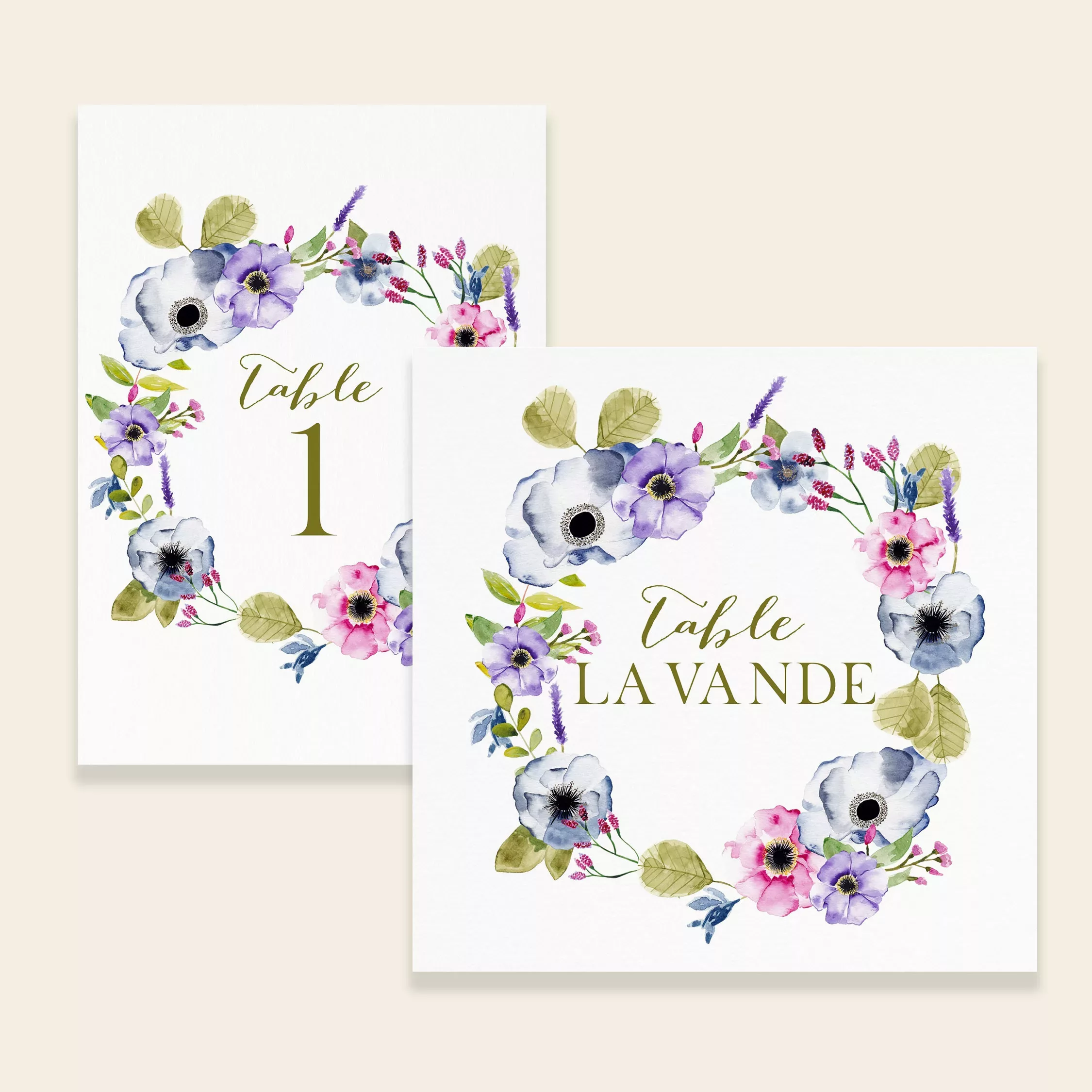 Pour un repas organisé n’oubliez pas les numéros ou noms de table. Ils sont indispensables pour identifier chaque table et aider vos invités à se diriger. Assortis à votre papeterie de mariage, ils participeront à la décoration de votre table.