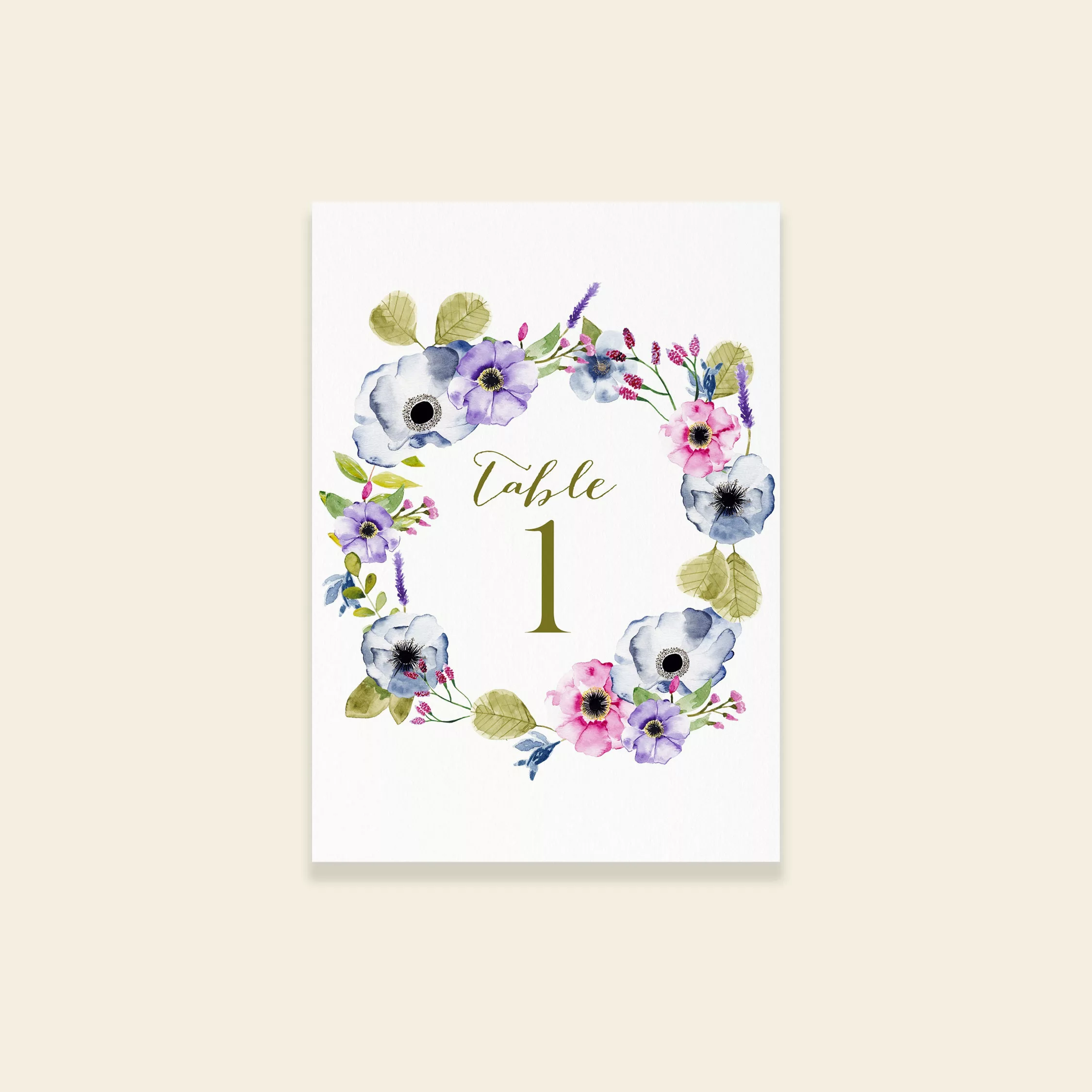 Numéro / Nom de table de la collection BALADE CHAMPÊTRE issue de la gamme mariage du studio. “Balade champêtre” est un joli design mettant en scène des fleurs des champs et leur feuillage, le tout peint à la main par mes soins à l’aquarelle dans mon studio. Ces fleurs à l’esprit sauvage donnent l’impression de pousser dans tous les sens pour un effet naturel. C’est une collection idéale pour les mariages à l’esprit floral, campagne, bohème, rustique et romantique.