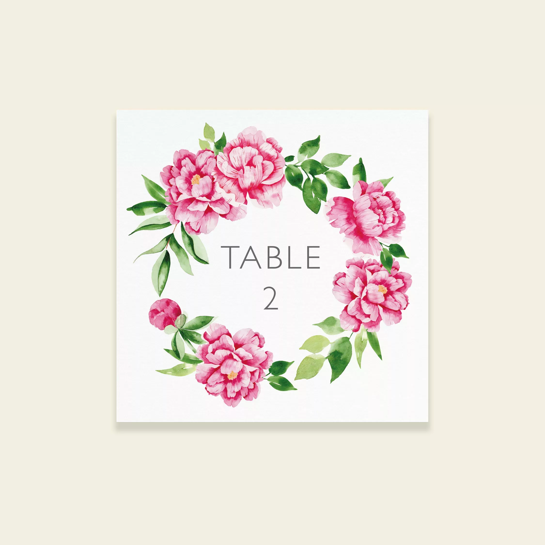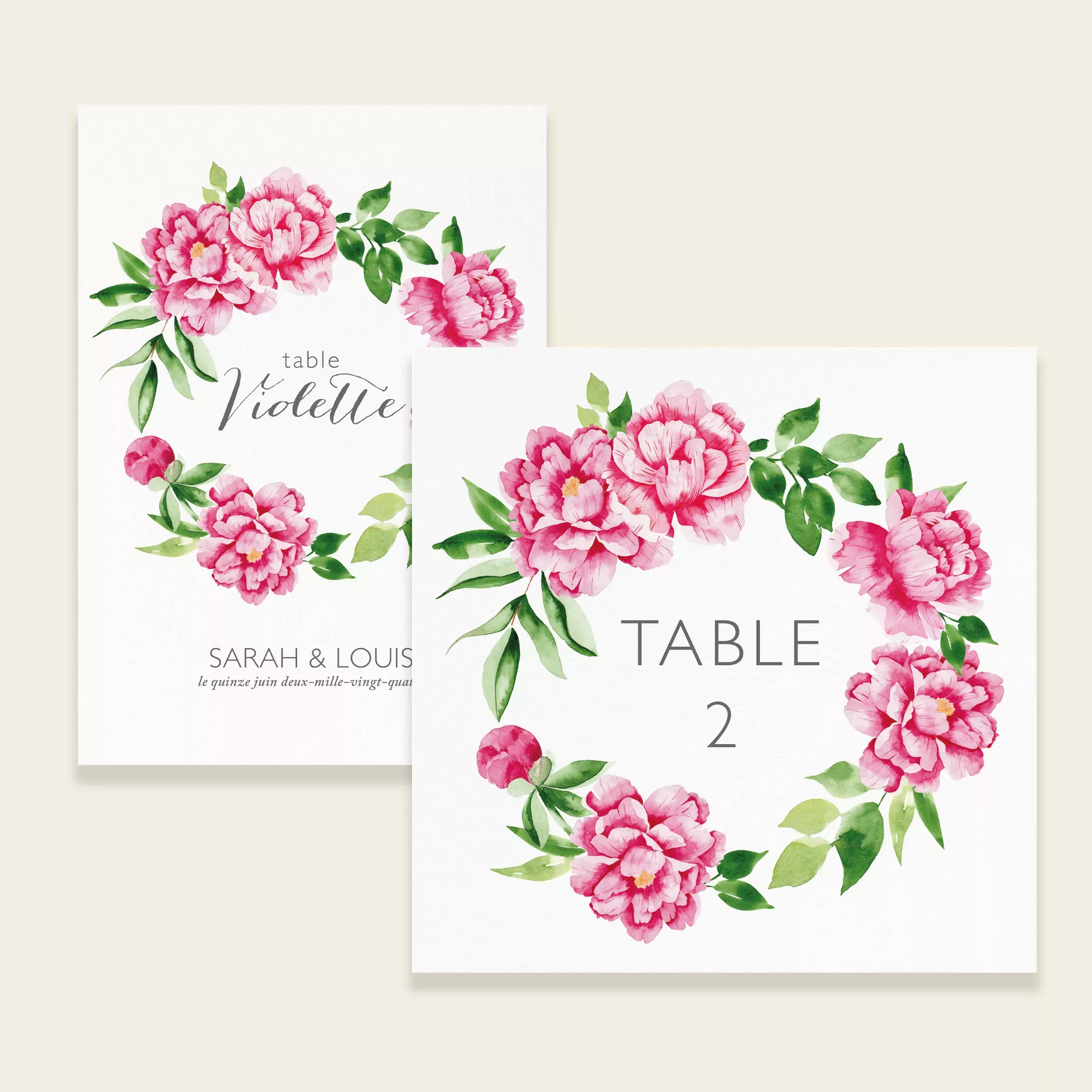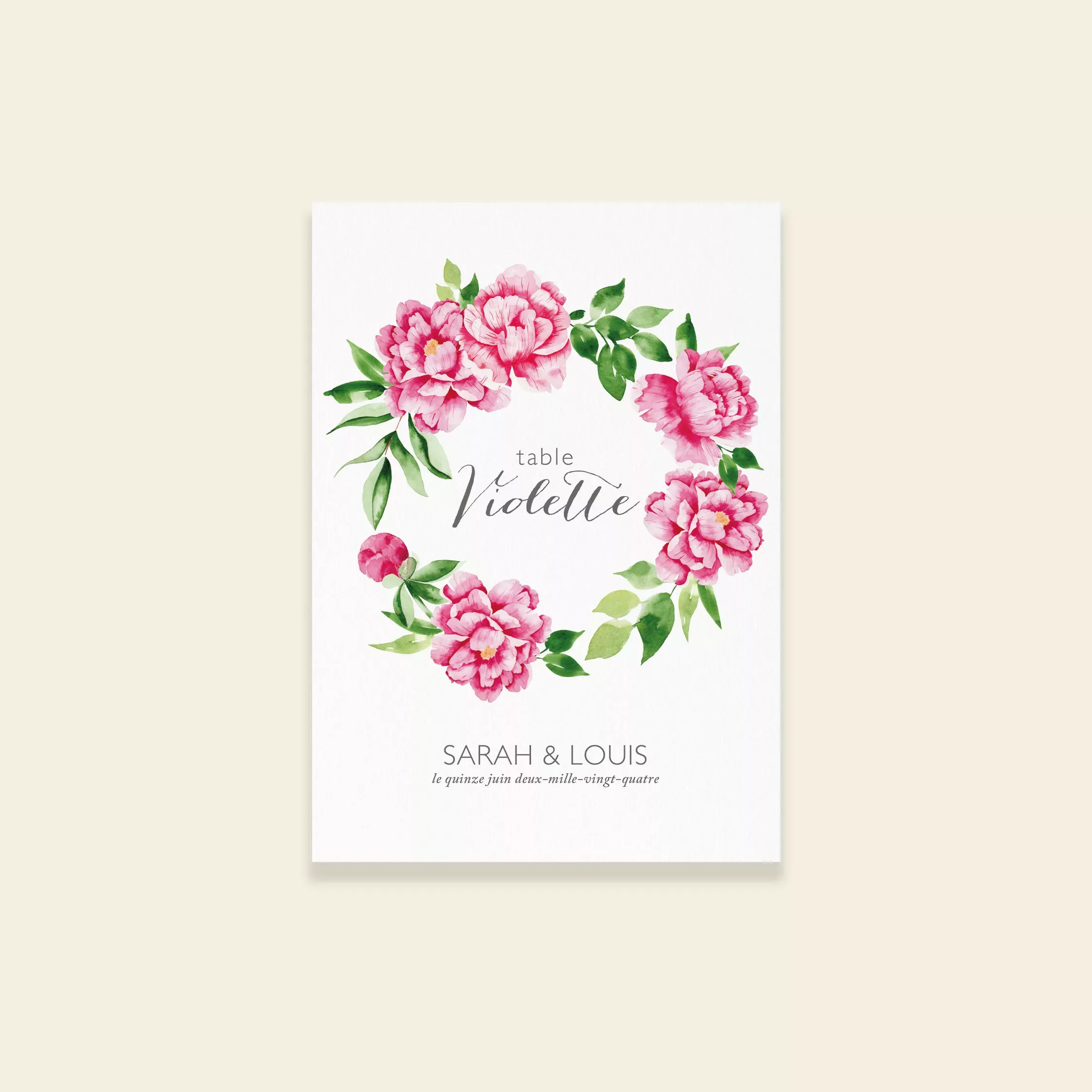 Numéro / Nom de table de la collection PIVOINES ROMANTIQUES issue de la gamme mariage du studio.