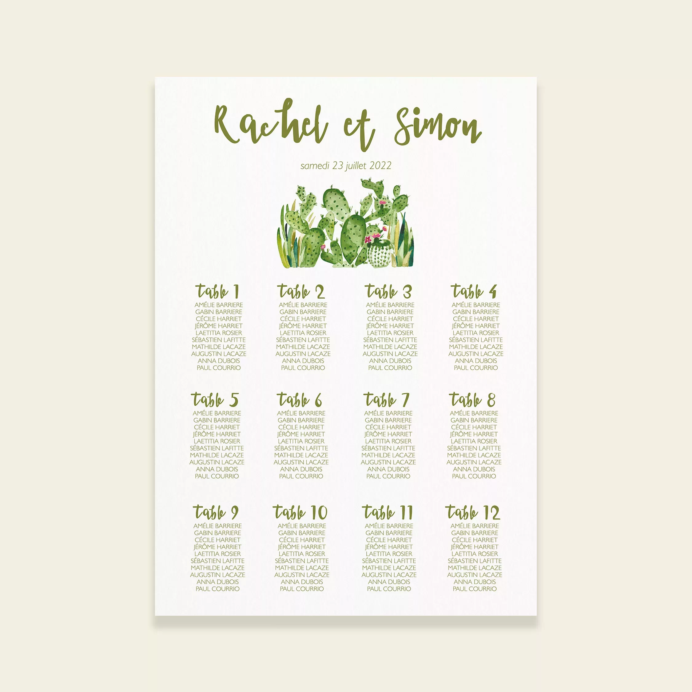 Plan de table A2 de la collection CACTUS GARDEN issue de la gamme mariage de Maison Célestine. “Cactus Garden” est un joli design, entièrement peint à la main à l’aquarelle au studio. Une papeterie mettant en scène des plantes que j’adore: les cactus. Une papeterie colorée, idéale pour les mariages à l’esprit bohème, nature et éclectique. Cette collection est portée par une ambiance très Palm Springs !