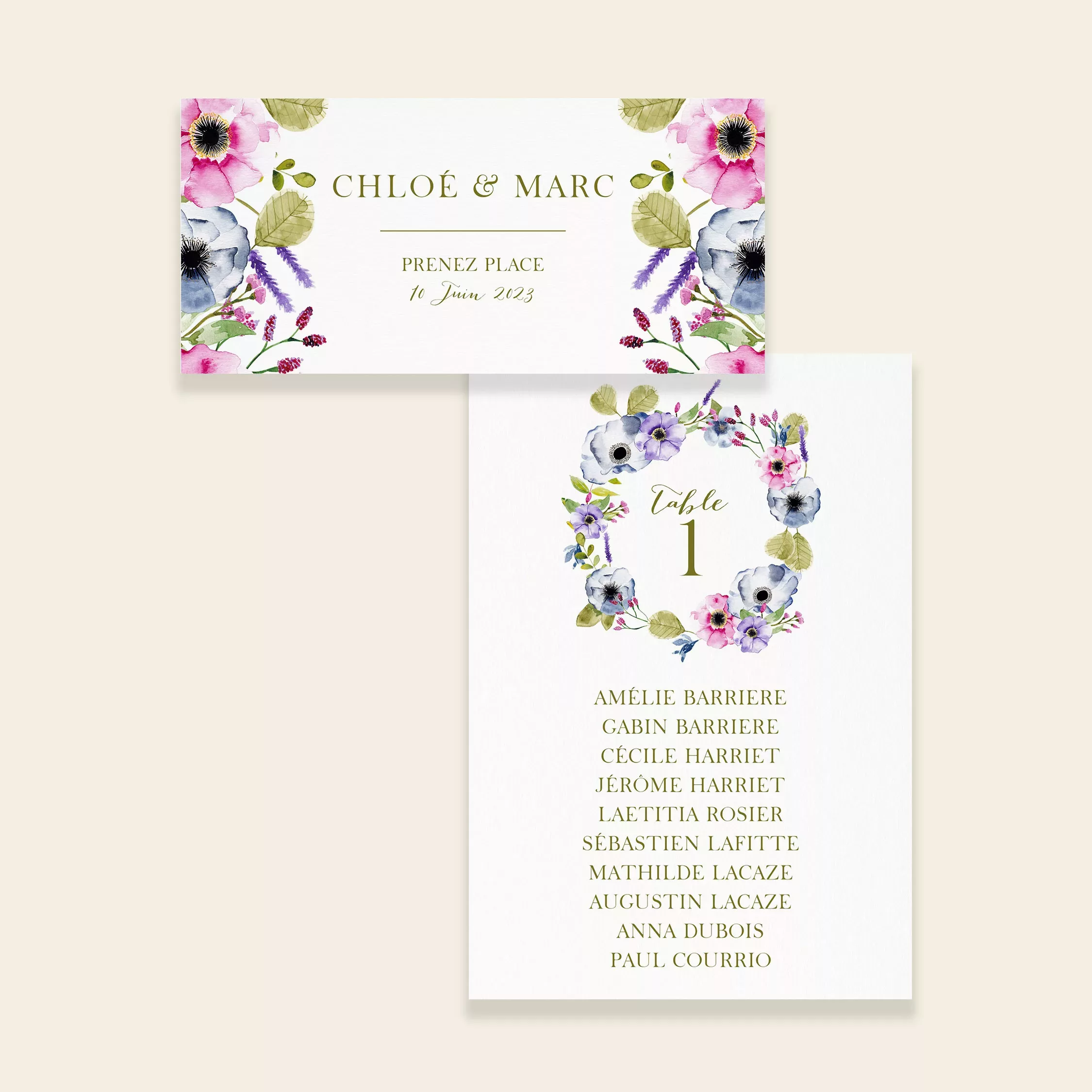 Plan de table de la collection BALADE CHAMPÊTRE issue de la gamme mariage du studio. “Balade champêtre” est un joli design mettant en scène des fleurs des champs et leur feuillage, le tout peint à la main par mes soins à l’aquarelle dans mon studio. Ces fleurs à l’esprit sauvage donnent l’impression de pousser dans tous les sens pour un effet naturel. C’est une collection idéale pour les mariages à l’esprit floral, campagne, bohème, rustique et romantique.