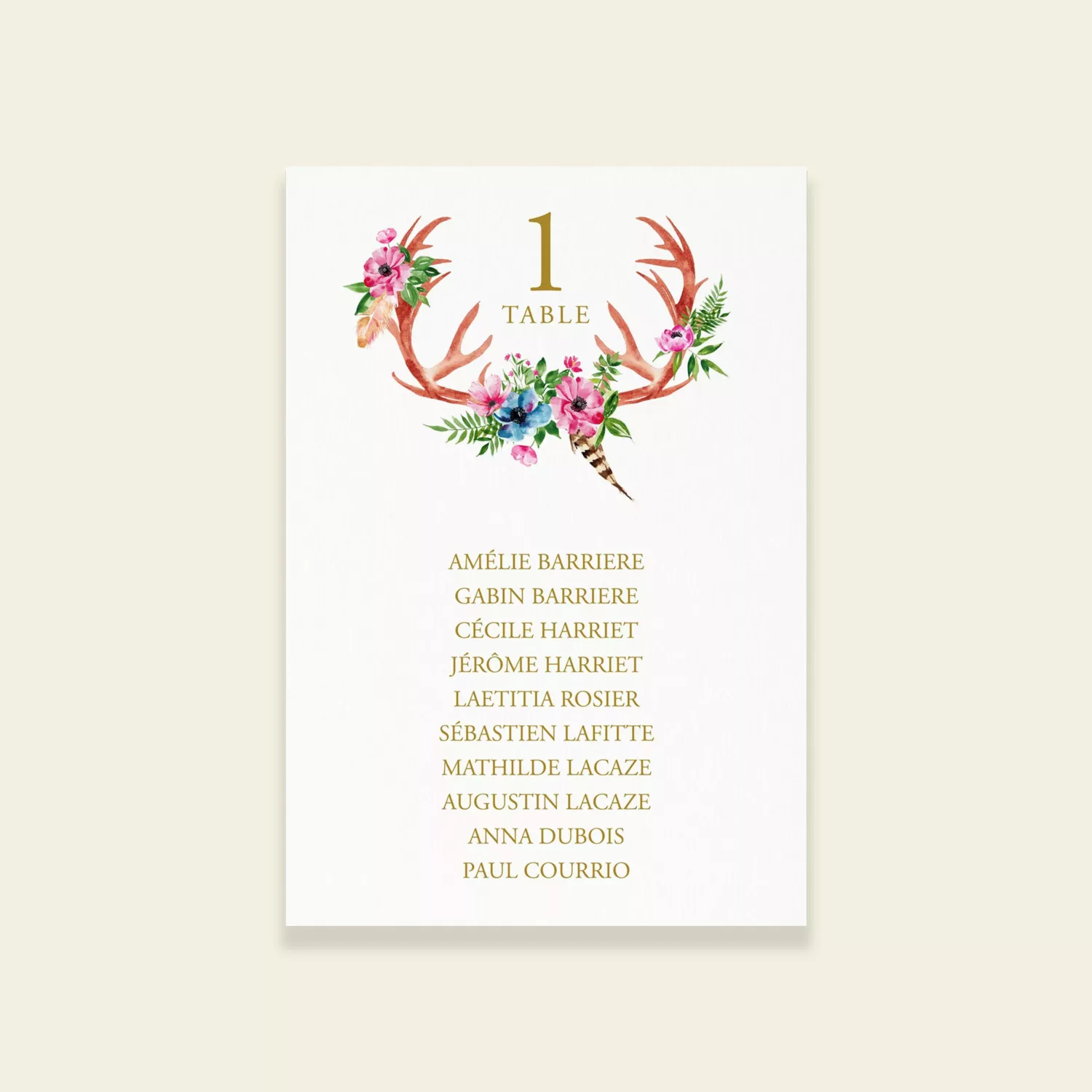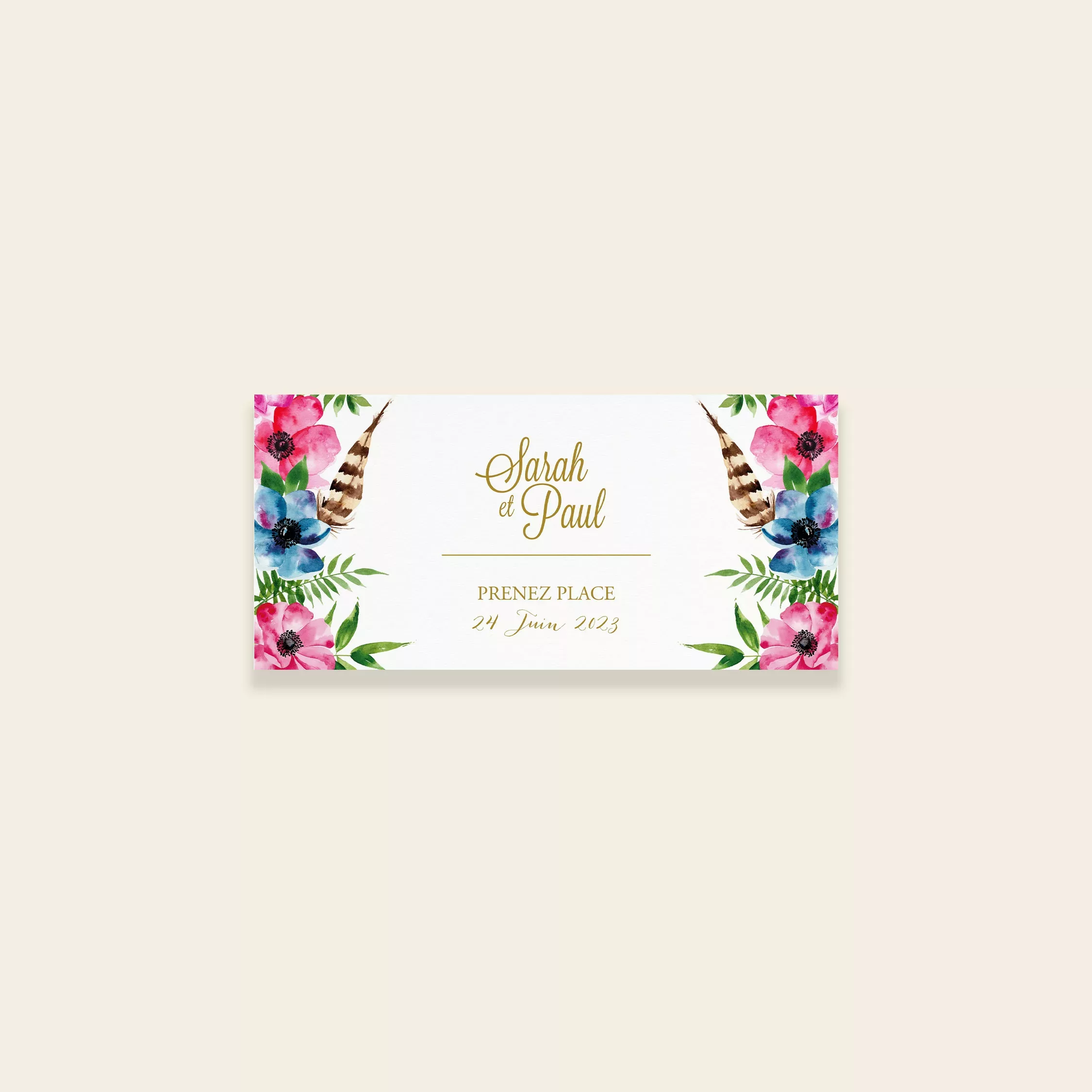Plan de table de la collection BOHOWILD issue de la gamme mariage de Maison Célestine. “Bohowild” est un design à l’esprit bohème entièrement peint à la main à l’aquarelle au studio. Cette papeterie de mariage mêle fleurs, feuillage, plumes, bois de cerf et typographie chic et romantique. C’est une collection idéale pour les mariages à l’esprit bohème et rustique.
