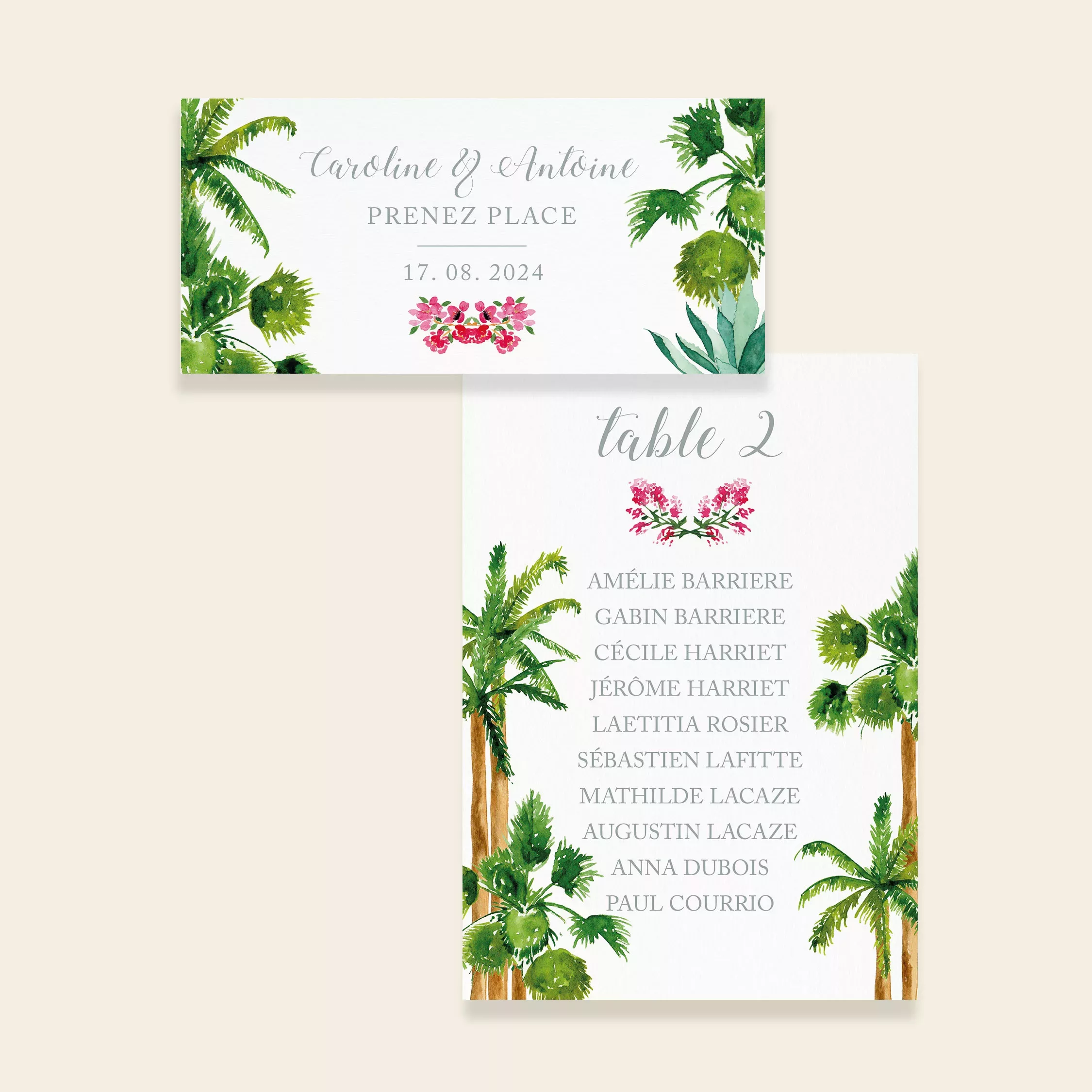 Plan de table de la collection PALM SPRINGS issue de la gamme mariage du studio.