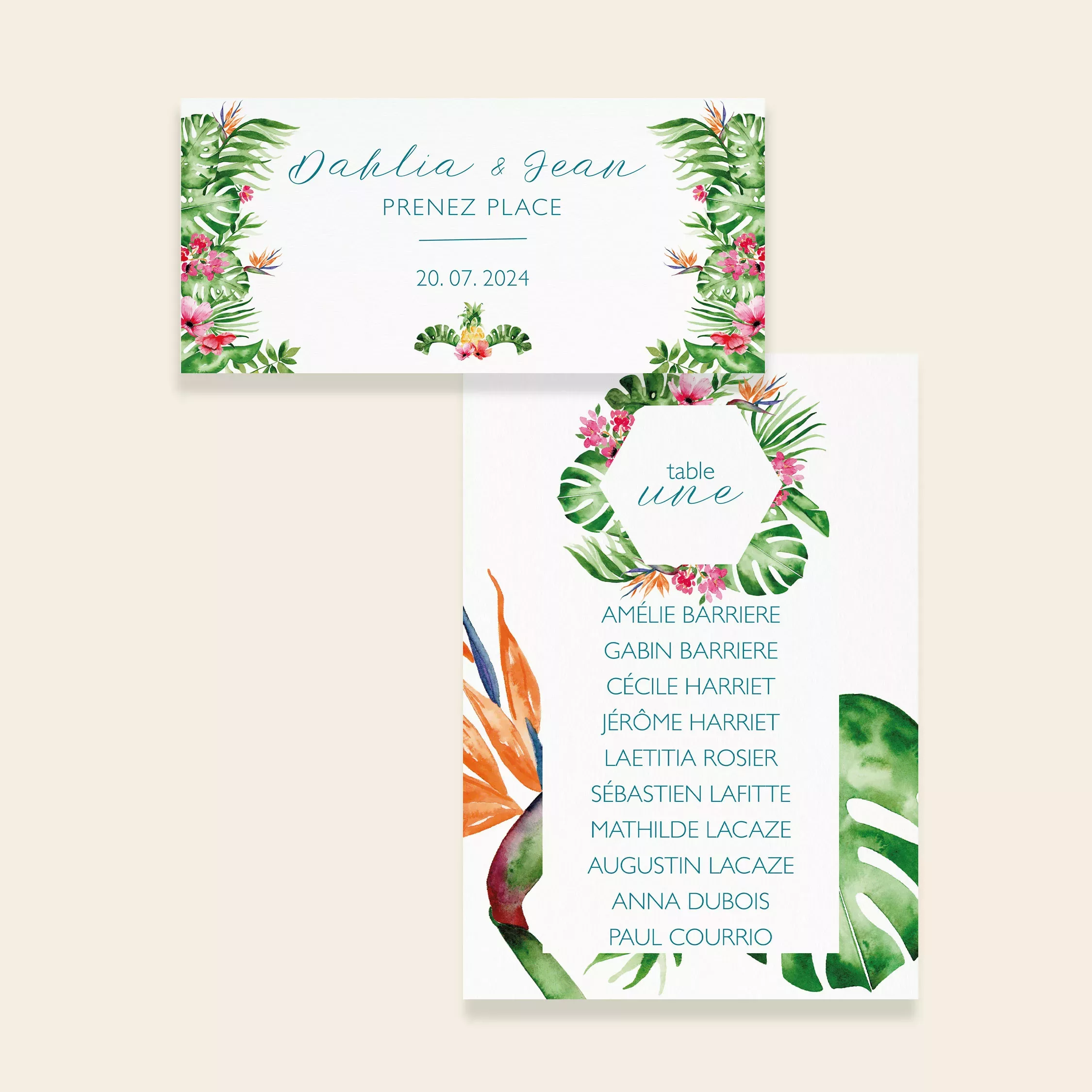 Plan de table de la collection TROPICAL POP issue de la gamme mariage du studio.