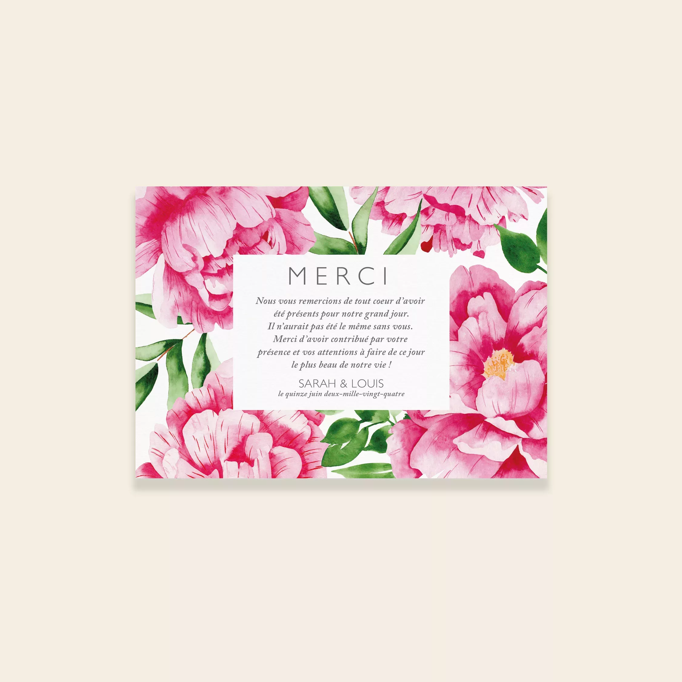Remerciements de mariage de la collection PIVOINES ROMANTIQUES issue de la gamme mariage du studio.