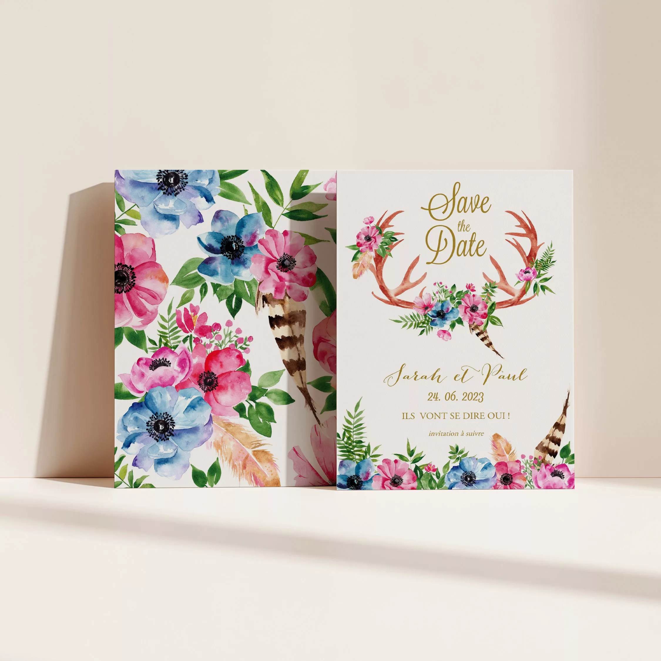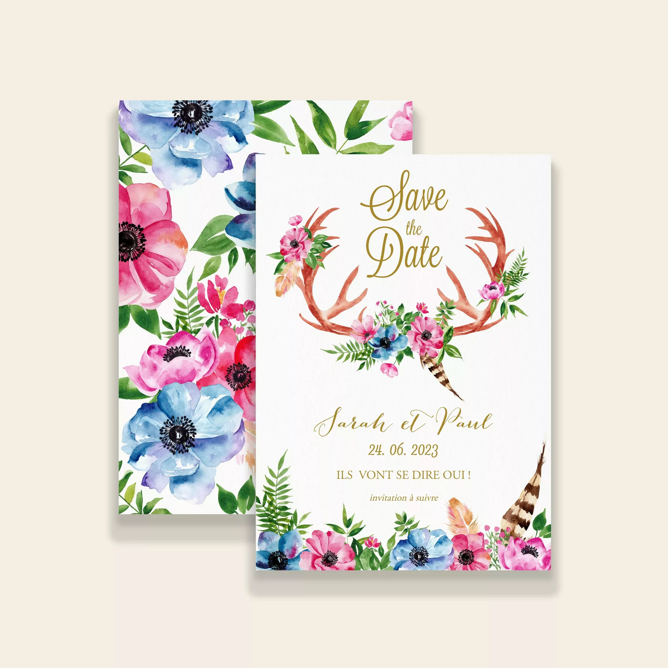 La collection Bohowild de Maison Célestine célèbre l’esprit libre et naturel des mariages bohèmes. Entièrement peinte à la main à l’aquarelle dans notre studio, elle mêle avec finesse fleurs sauvages, feuillages délicats, plumes et bois de cerf. Chaque élément a été pensé pour créer une ambiance douce, poétique et un brin sauvage, fidèle à l’esprit bohème.