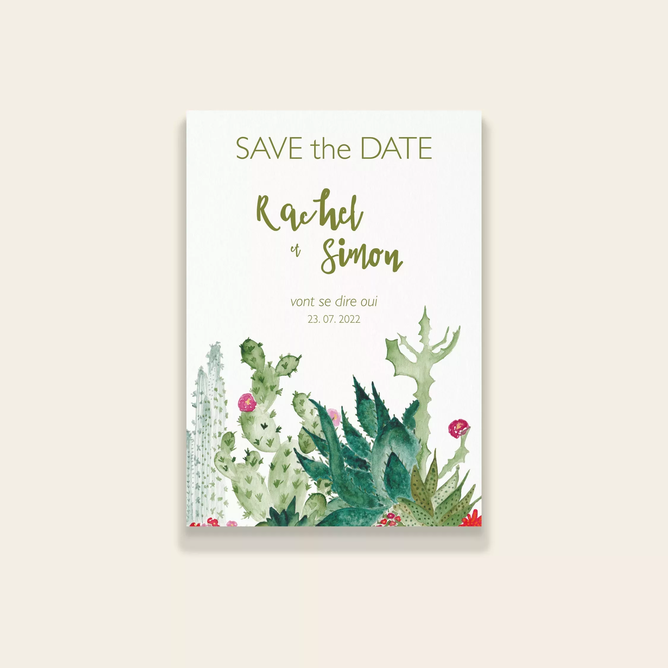 La collection Cactus Garden, issue de la gamme mariage de Maison Célestine, célèbre la beauté des plantes du désert. Entièrement peinte à la main à l’aquarelle dans mon studio, elle mêle douceur, lumière et fraîcheur. Chaque illustration met en scène mes plantes favorites : les cactus. Leurs formes graphiques, associées à des nuances subtiles de vert et de rose, créent une atmosphère vivante et joyeuse. Ainsi, chaque faire-part devient une invitation à la détente et au voyage.