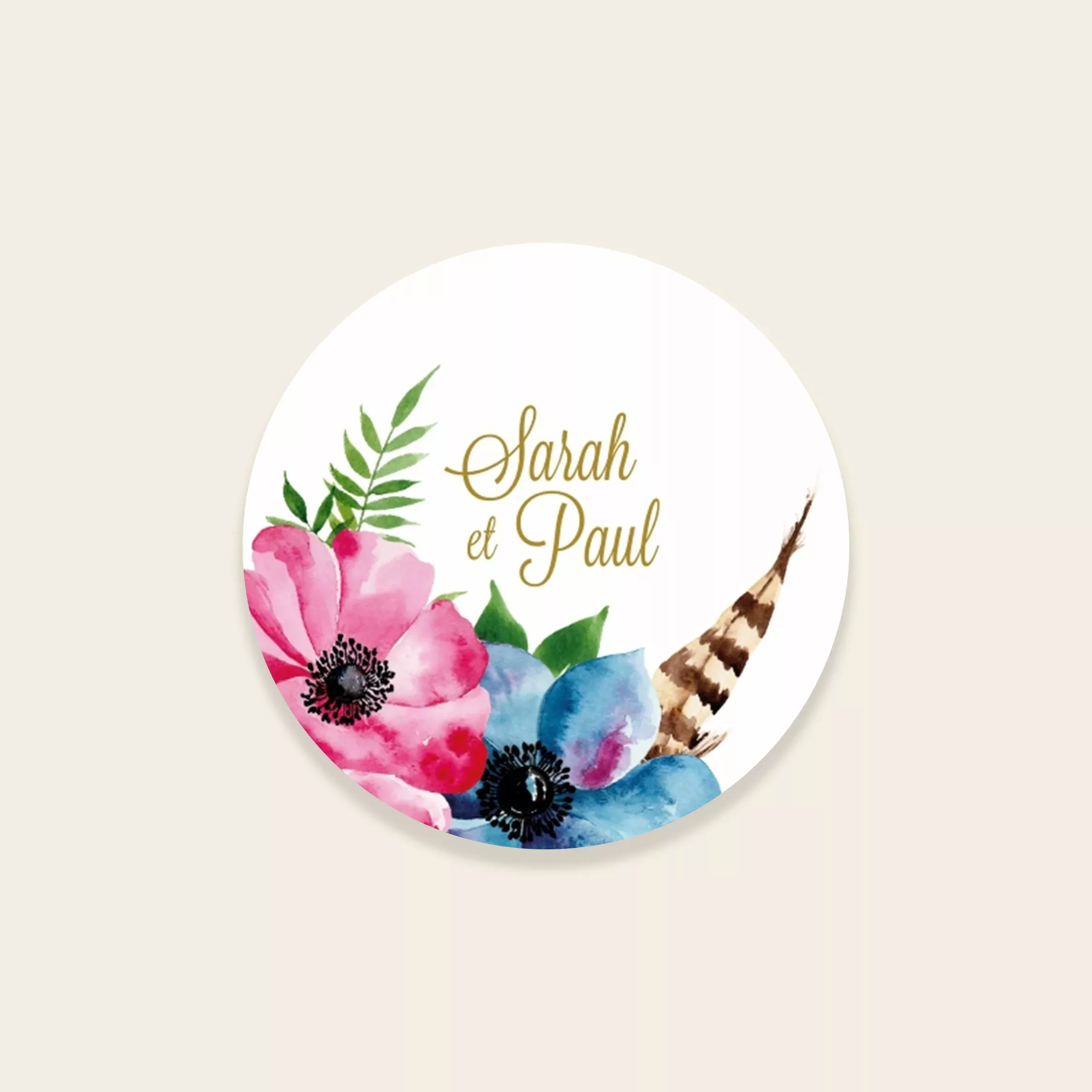 Stickers de la collection BOHOWILD issue de la gamme mariage de Maison Célestine. “Bohowild” est un design à l’esprit bohème entièrement peint à la main à l’aquarelle au studio. Cette papeterie de mariage mêle fleurs, feuillage, plumes, bois de cerf et typographie chic et romantique. C’est une collection idéale pour les mariages à l’esprit bohème et rustique.