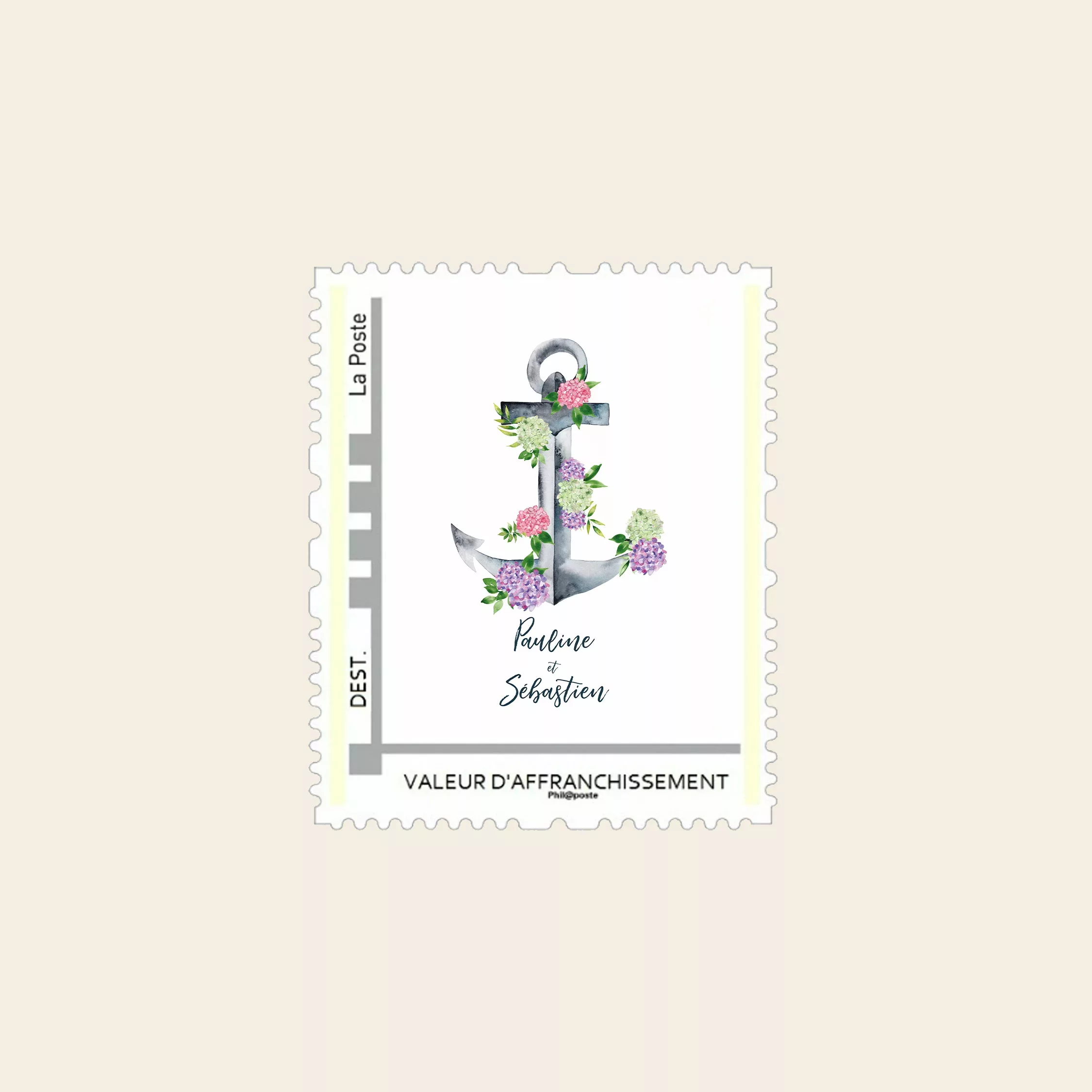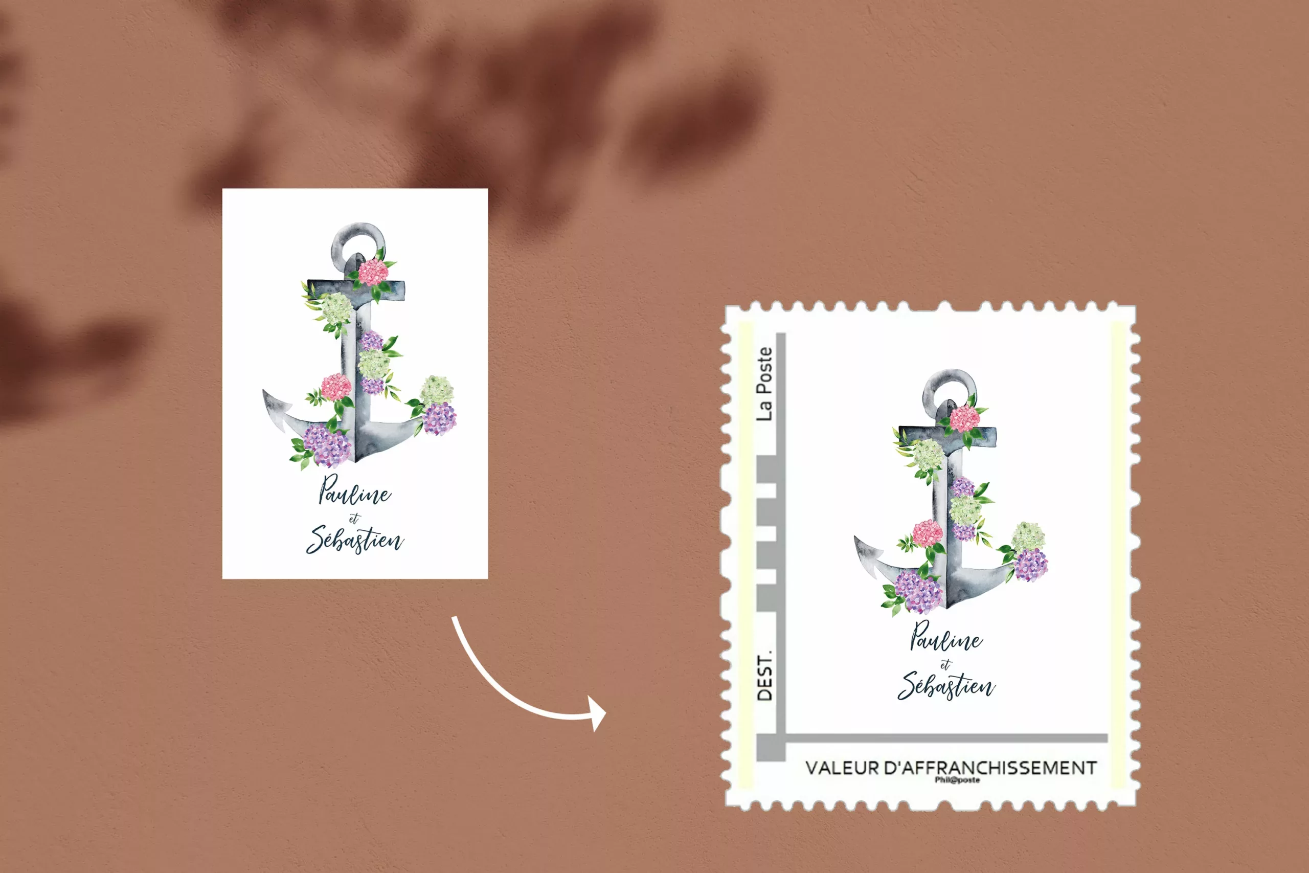 Le timbre c’est la petite touche en plus qui apportera de l’élégance à votre enveloppe. Nous vous envoyons le visuel et vous n’avez plus qu’à créer votre timbre personnalisé sur le site de La Poste.
