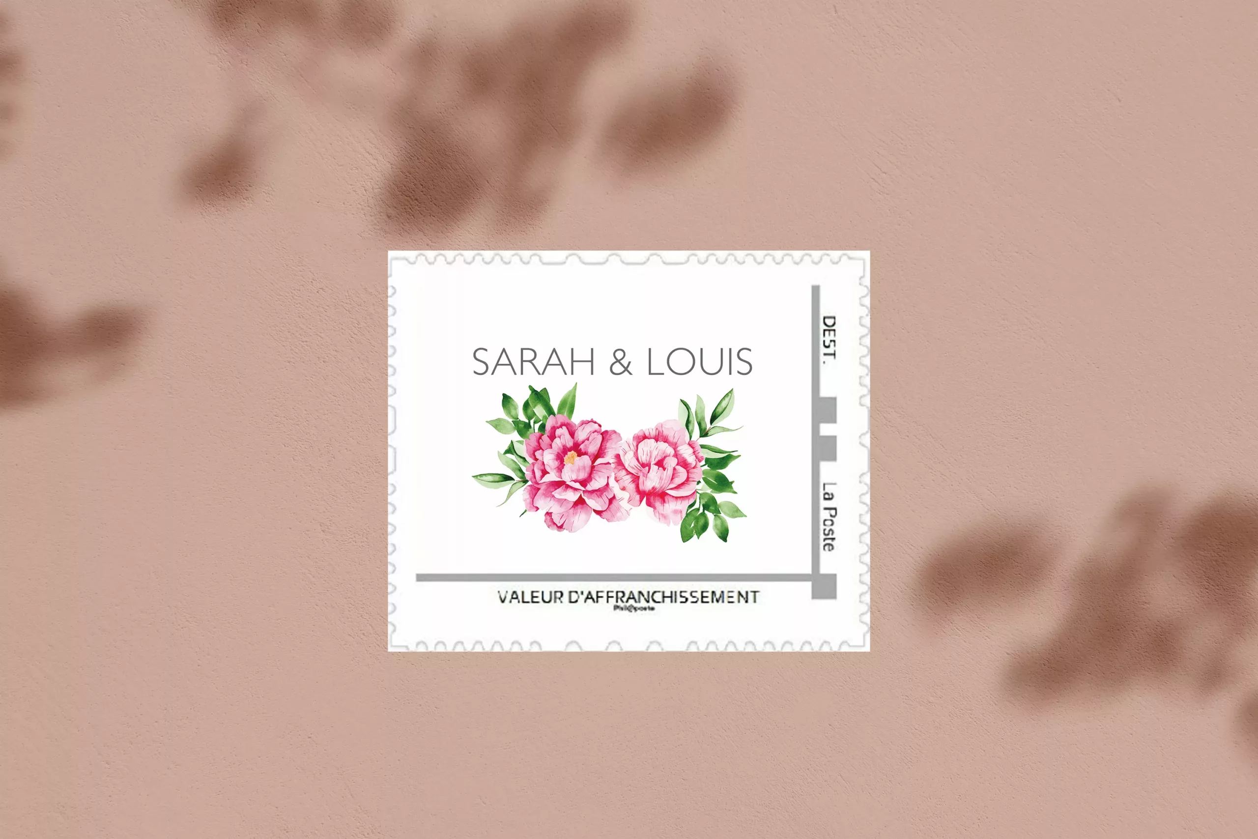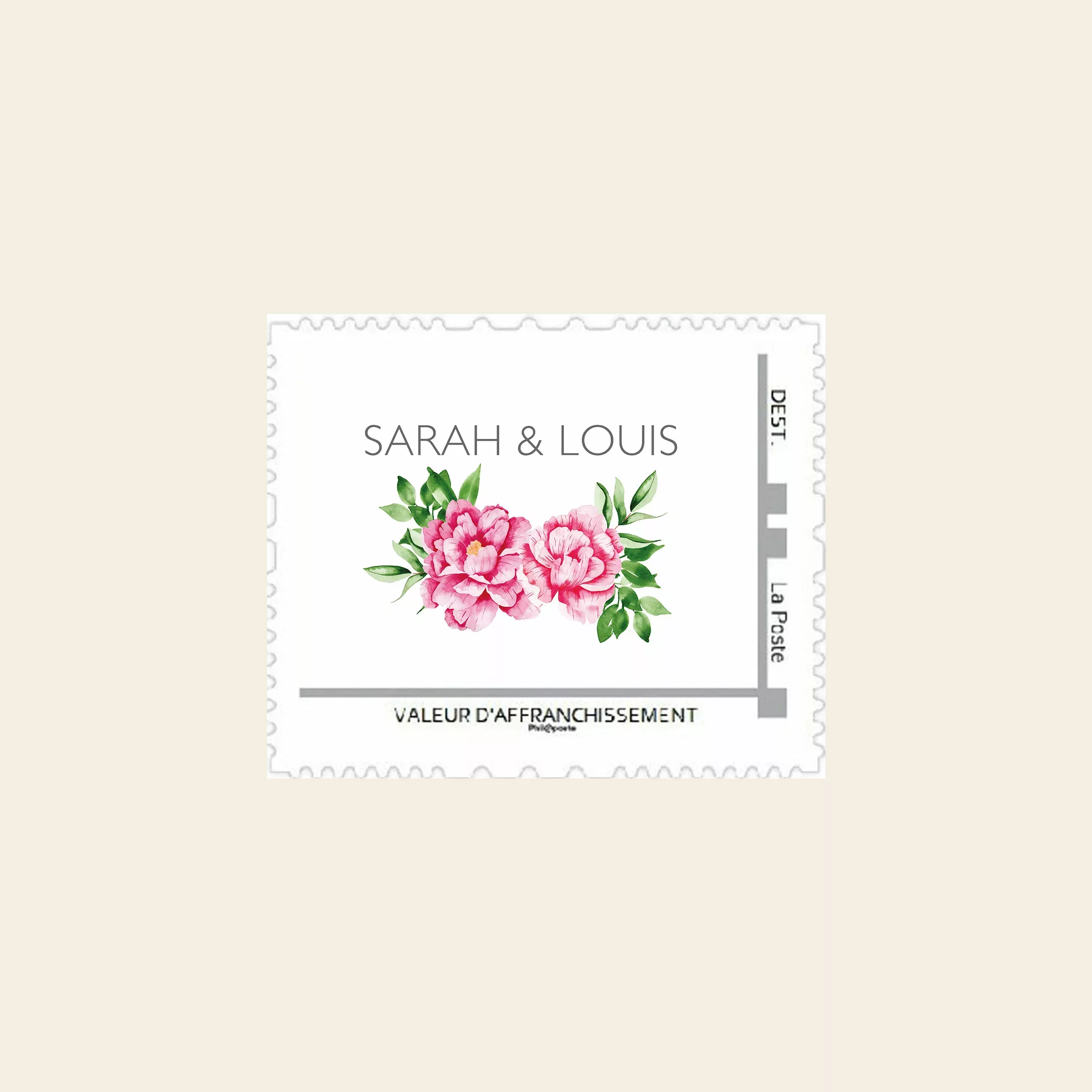 Visuel de timbre de la collection PIVOINES ROMANTIQUES issue de la gamme mariage du studio.